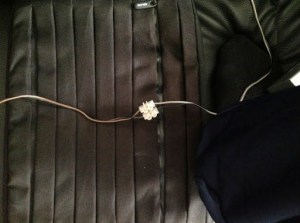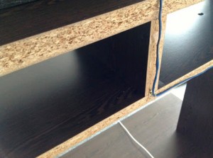 Here’s how I fixed the cable of the center speaker to the back of the wall unit. The wood is actually thick enough to hide several cables.