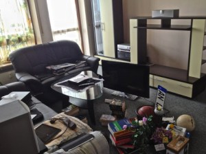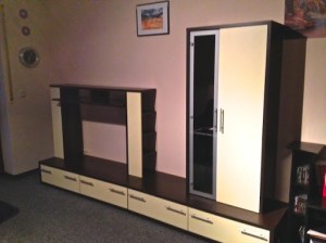 The first thing I had to do is rearrange the wall unit to center the TV in front of the couch. Here’s how it looked before with all decoration removed: