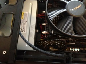 One thing I also changed is the placement of the Blu-Ray drive. I moved it down one slot so the power plug would not collide with the left-most heatpipe of the CPU cooler.