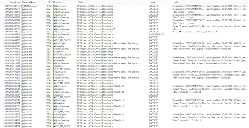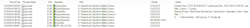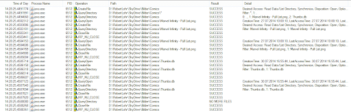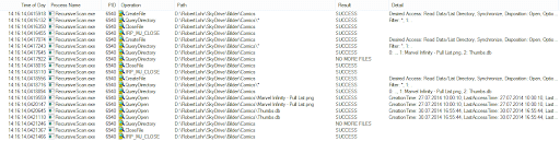 Armed with the knowledge gleaned from the recursive Scan2() method it is immediately obvious what is wrong with this code. We know that FileInfo results in a file system access, so what do you think will happen when File.GetAttributes() is called? Let the ProcessMonitor do the talking.