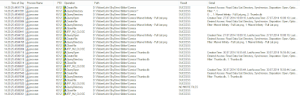 Armed with the knowledge gleaned from the recursive Scan2() method it is immediately obvious what is wrong with this code. We know that FileInfo results in a file system access, so what do you think will happen when File.GetAttributes() is called? Let the ProcessMonitor do the talking.