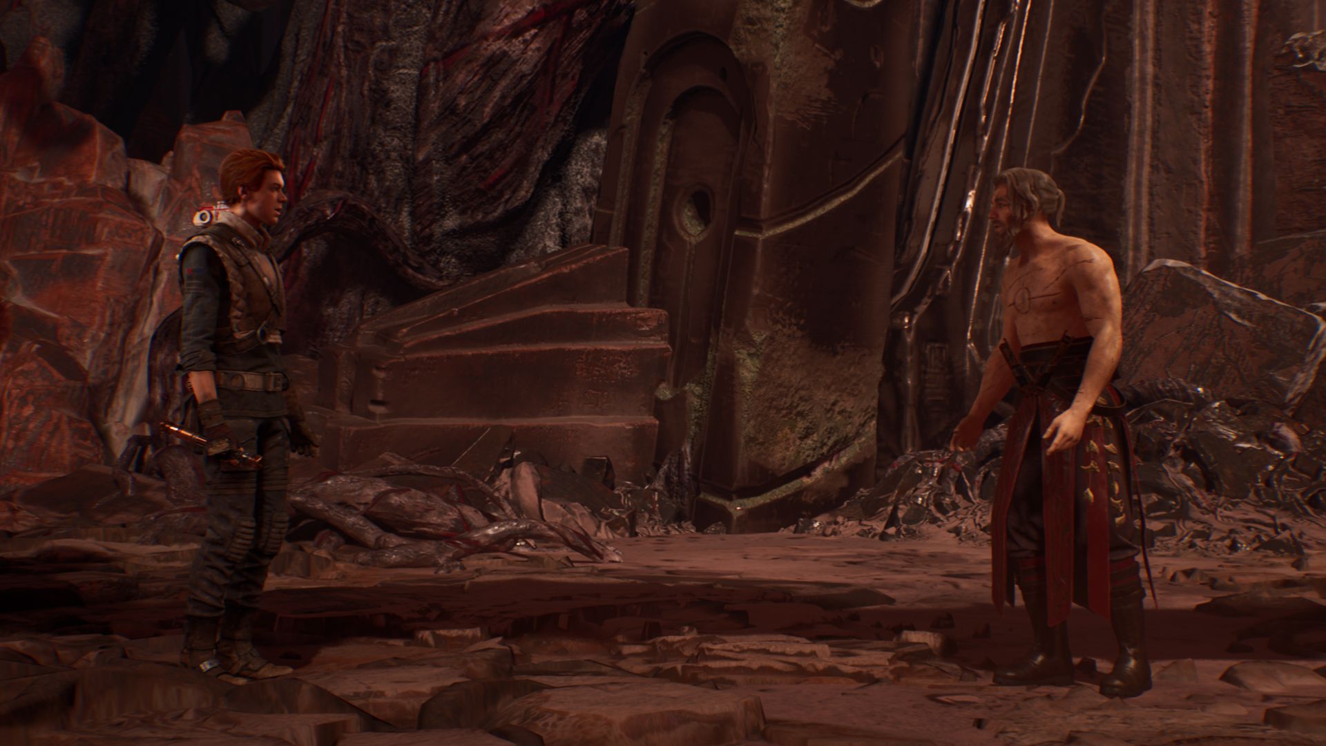 Jedi Fallen Order has a limited set of characters and that is a good thing. You are not overwhelmed with too many names and faces to remember and this way the game is able to focus more on the existing ones. You have a pilot, a mentor, who was a former Jedi, a couple of arch nemesis and, the best of all, a little droid named BD-1. Where the other people in your band of Jedi friends are likeable enough, the relationship between Cal Kestis and his little droid is the absolute highlight. Imagine loving a dog and there you have it. This droid is so cute and incredibly loveable. Through constant interactions between Cal and BD-1 your hero really becomes a person you can identify with.
