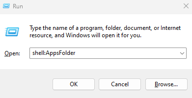 shell:AppsFolder. - Append a backslash followed by the value of