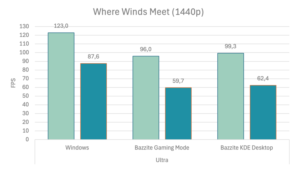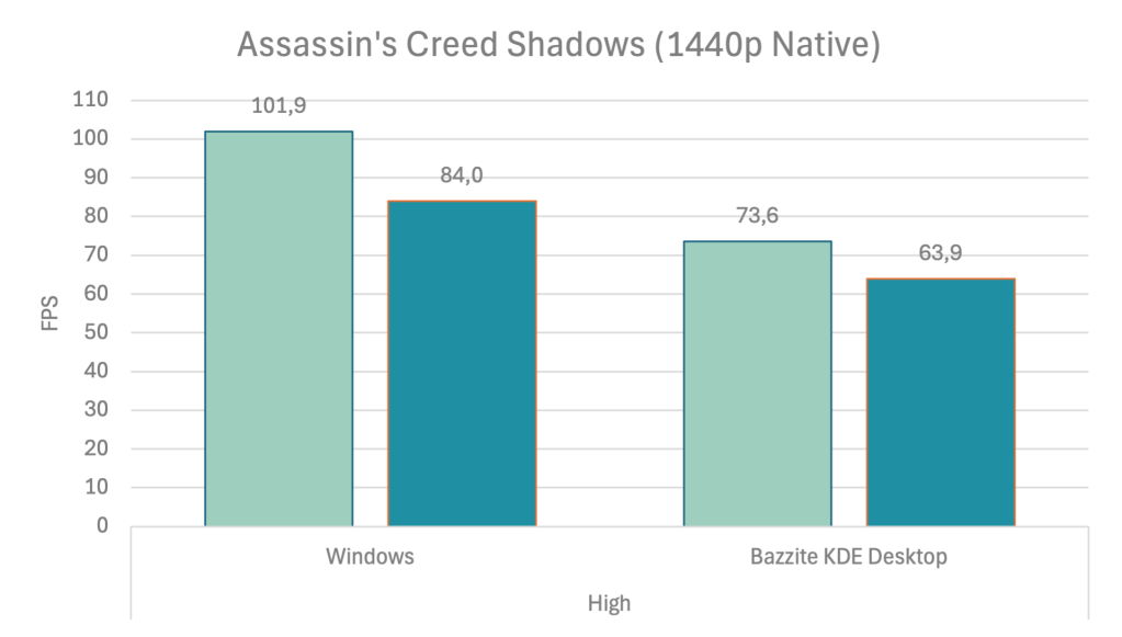 To be honest, I’m a bit surprised by the results. I have not performed a direct comparison with Windows before this benchmark – only a brief sanity check. But what we see here was consistent across several tests. Windows is the dominant leader. I suppose the leather joke from earlier better fits this title than AC Shadows.
